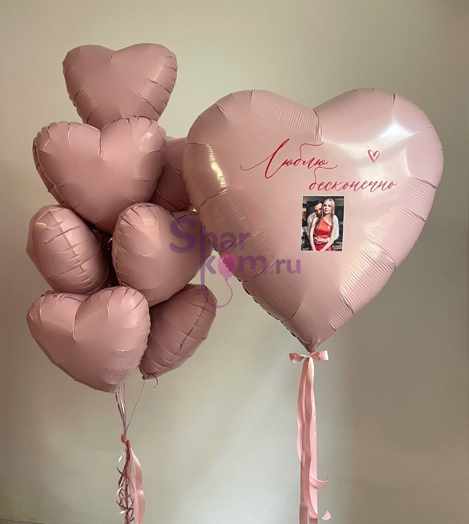 Фольгированное сердце 91 см с надписью и фото -1 шт.