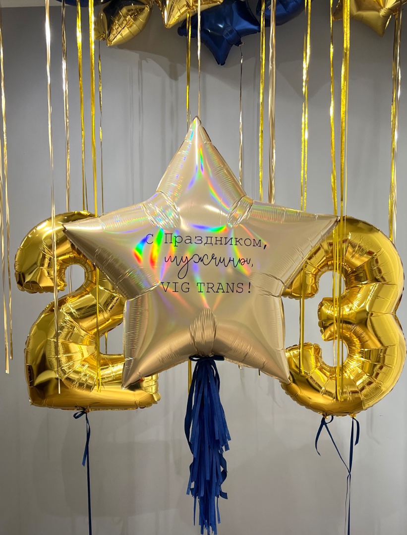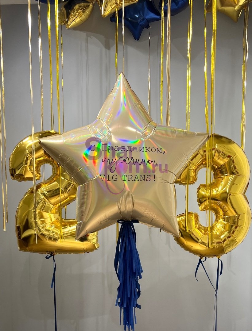Фольгированныя звезда 91 см с надписью - 1 шт.