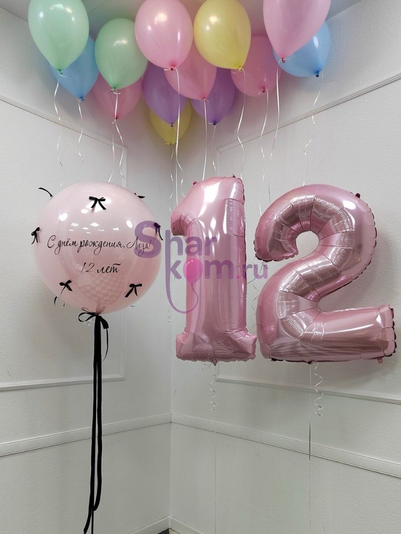 Зеркальный шар с надписью и бантиками — 1 шт.