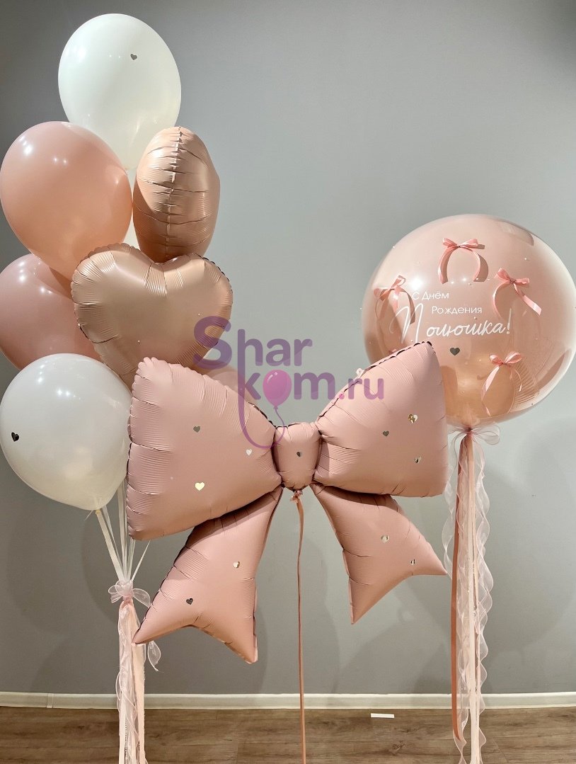 Большой стеклянный шар с индивидуальной надписью и бантиками — 1 шт.