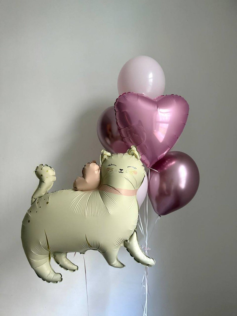 Композиция из шаров "Котик с бантиком"