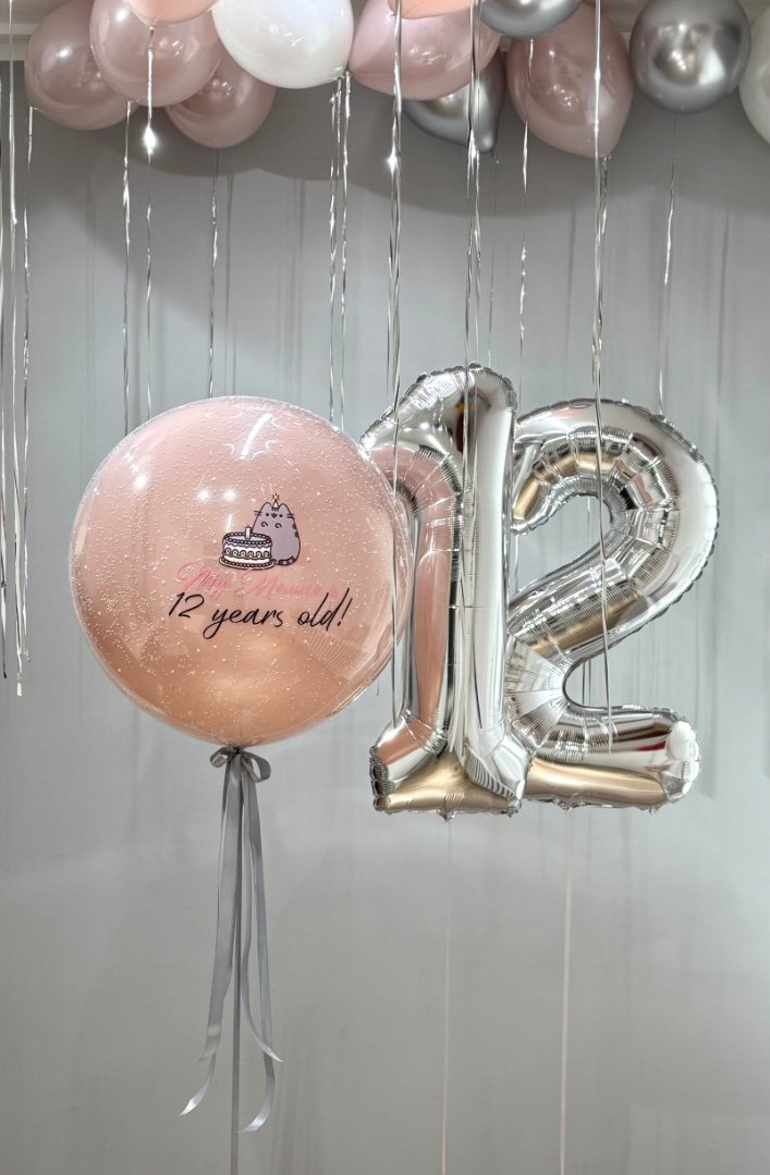 Композиция из шаров "Котик с тортиком"