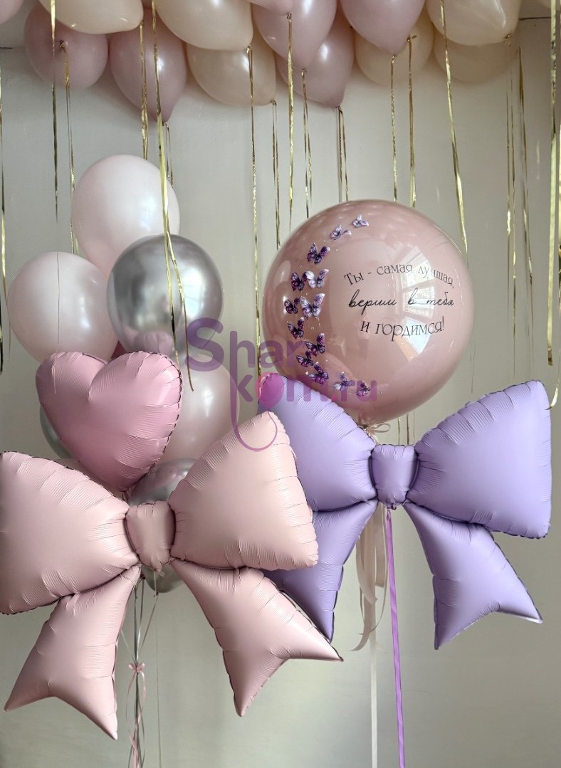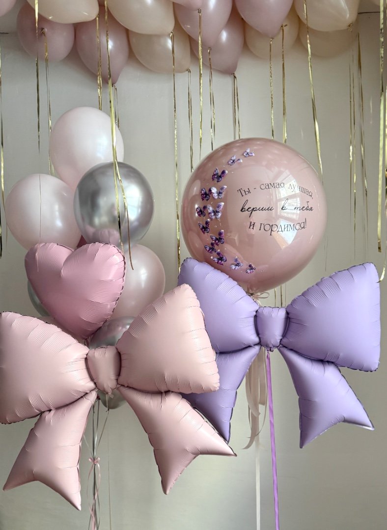 Фонтан: 9 латексных шаров (3 хром, 6 пастель) и сердце 45 см - 1 шт.