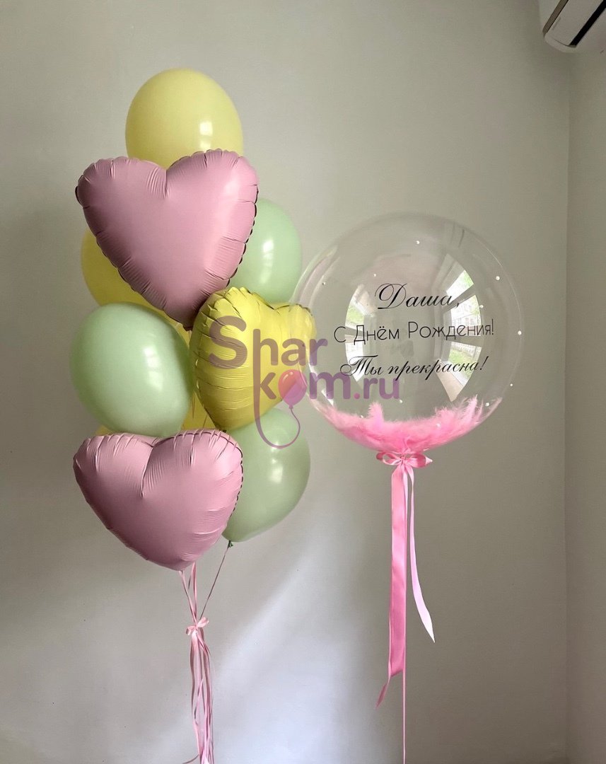 Баблс с перьями, декором и надписью — 1 шт.