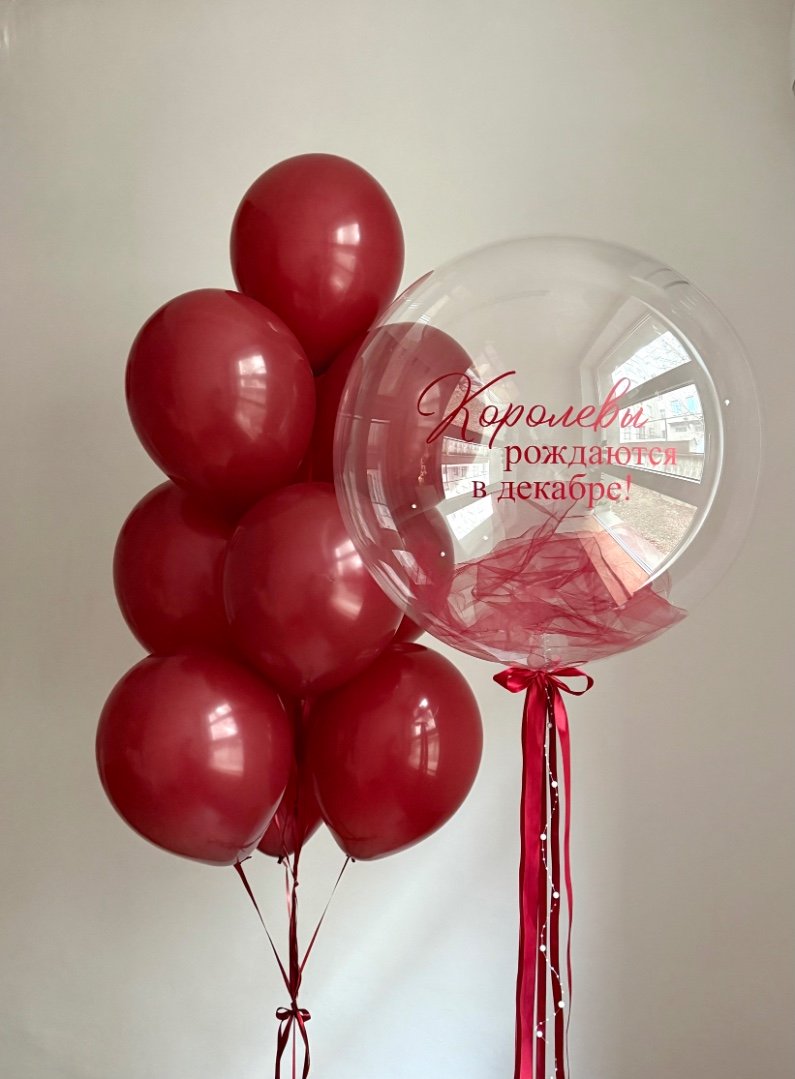 Шар сфера 60 см с фатином и надписью - 1 шт.