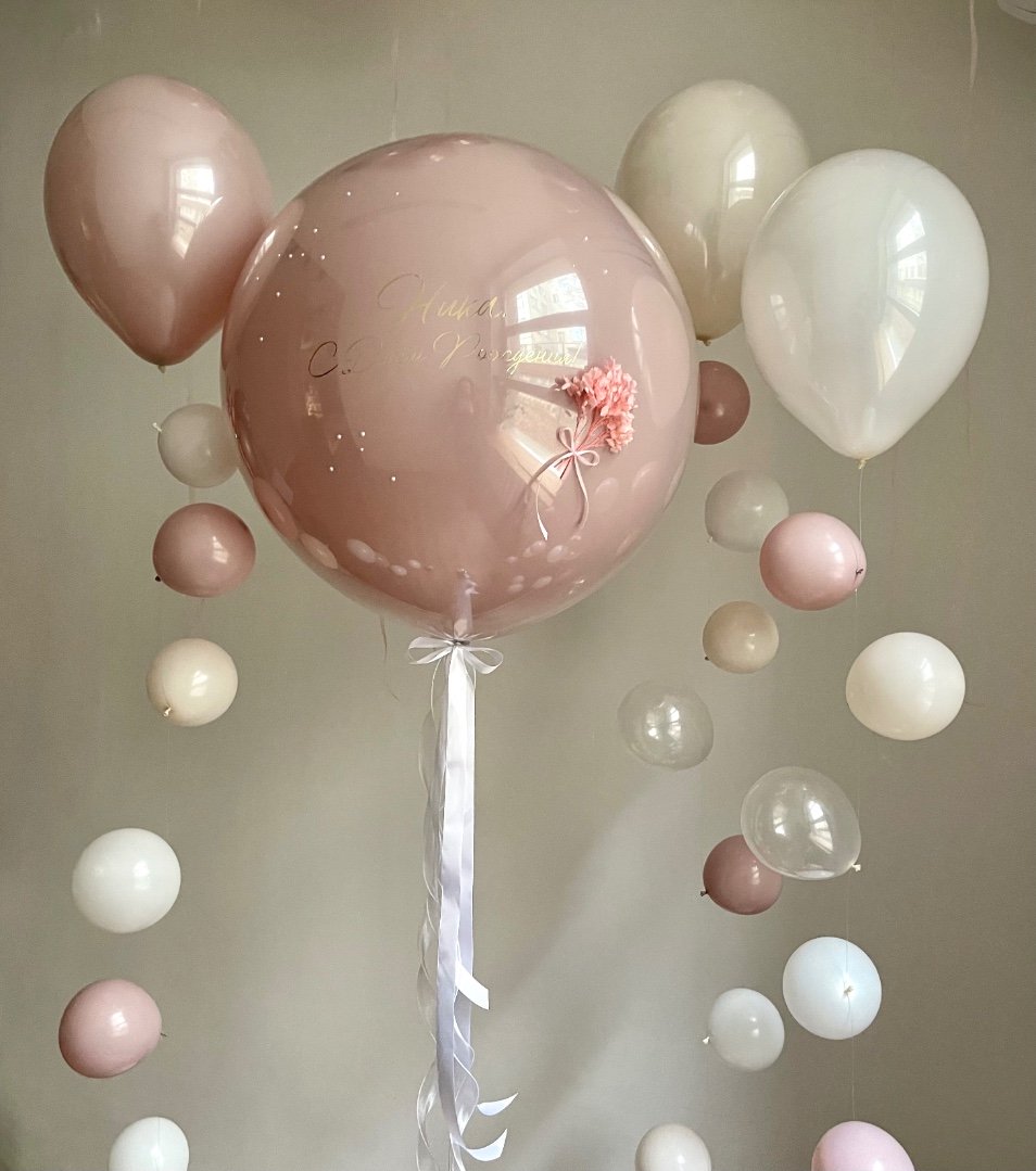 Стеклянный шар 60 см с надписью и декором - 1 шт.