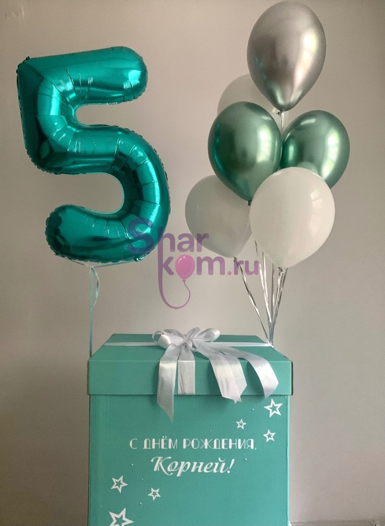 Коробка с шарами Сюрприз "Бирюзовый сет"