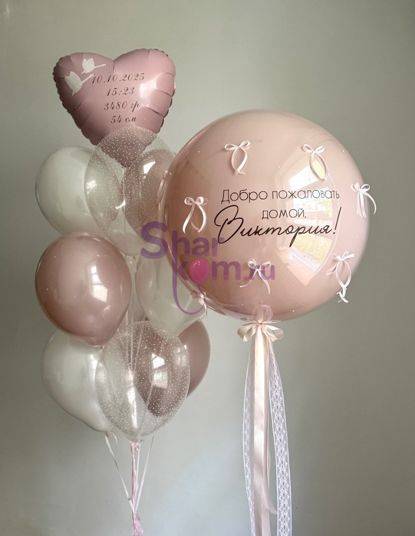 Композиция из шаров "Как долго мы тебя ждали" с бантиками
