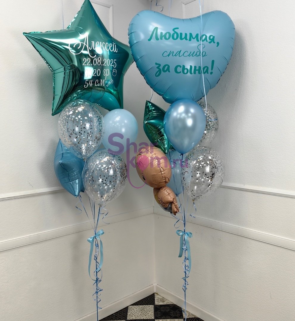 Композиция из шаров "Звезда и Сердце для мальчика"