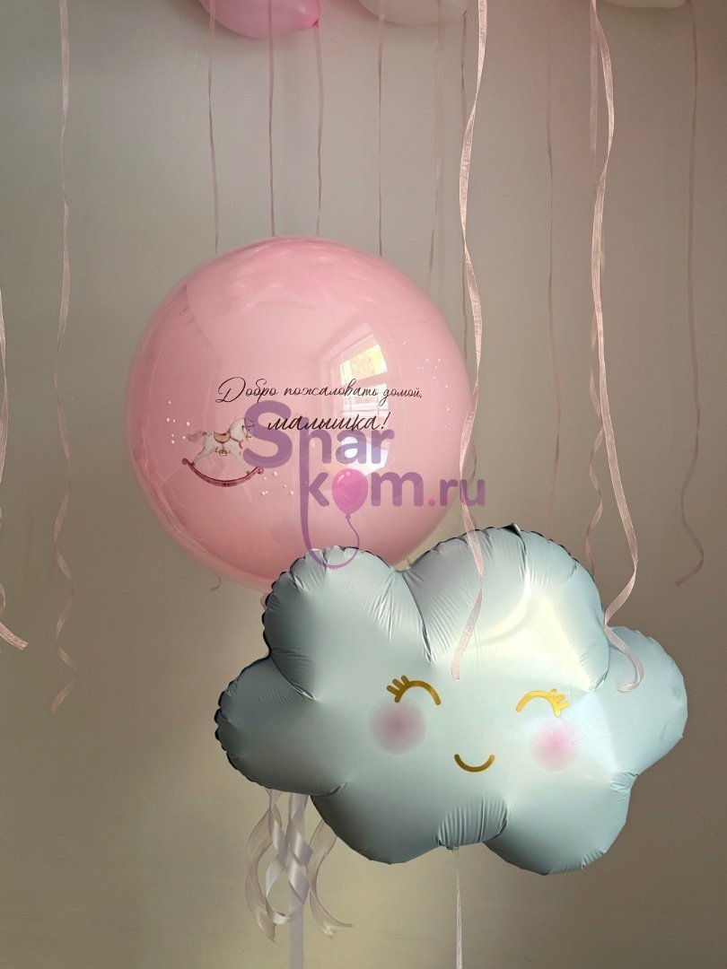 Стеклянный шар 60 см с надписью, картинкой и декором из жемчужин - 1 шт.
