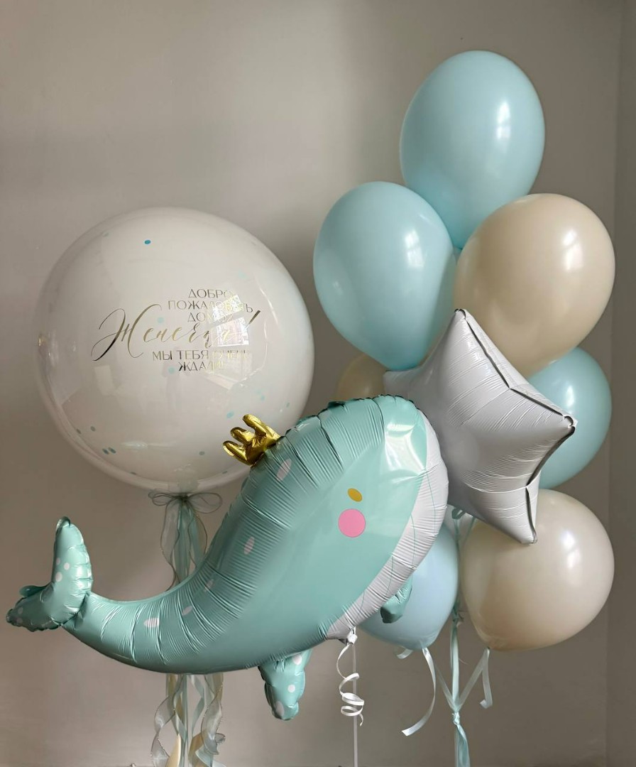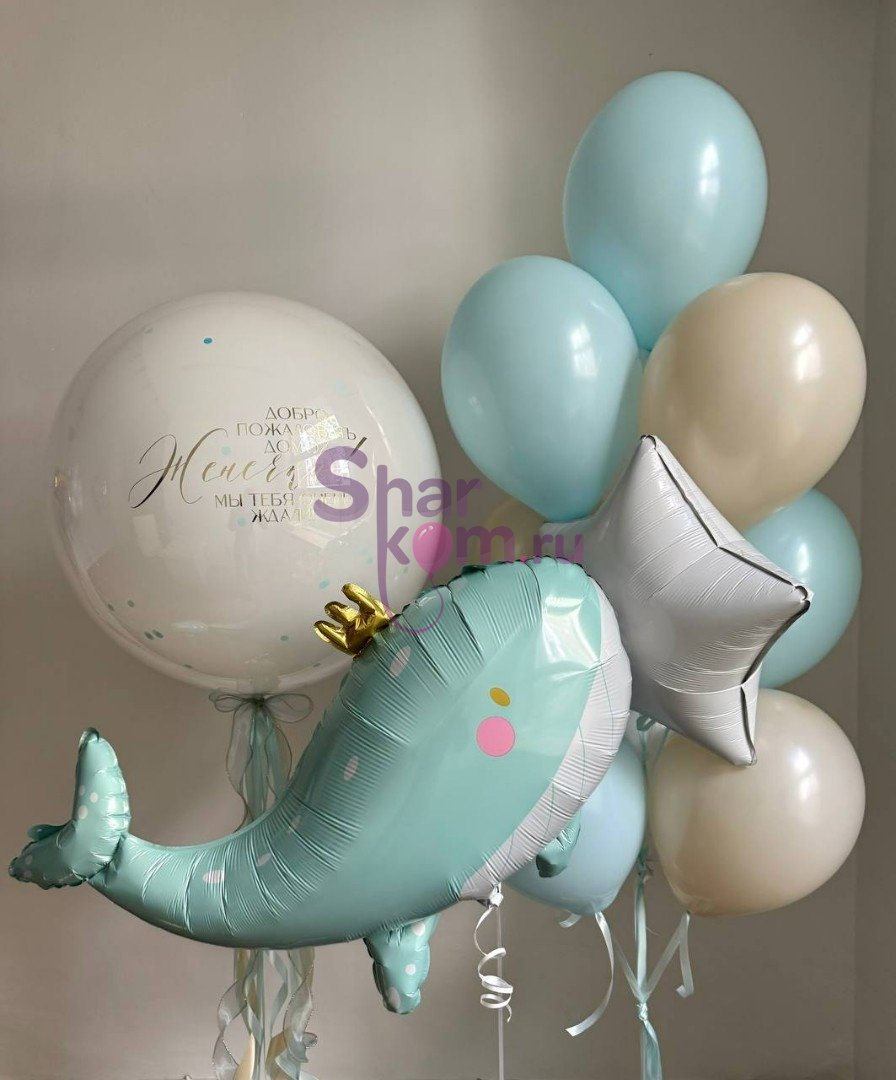 Композиция из шаров "Мы тебя ждали" с китом