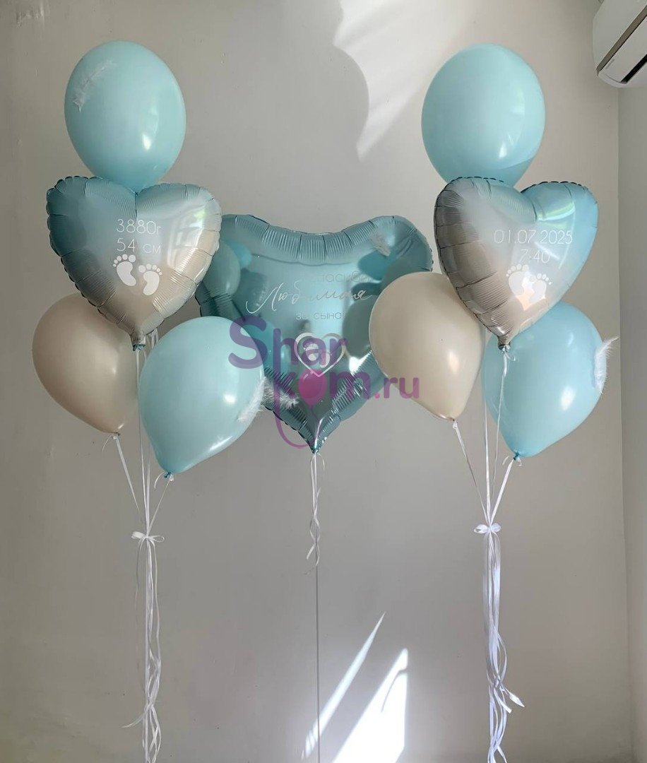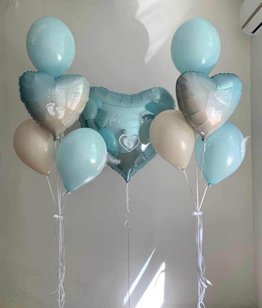 Большое фольгированное сердце с надписью и декором — 1 шт.