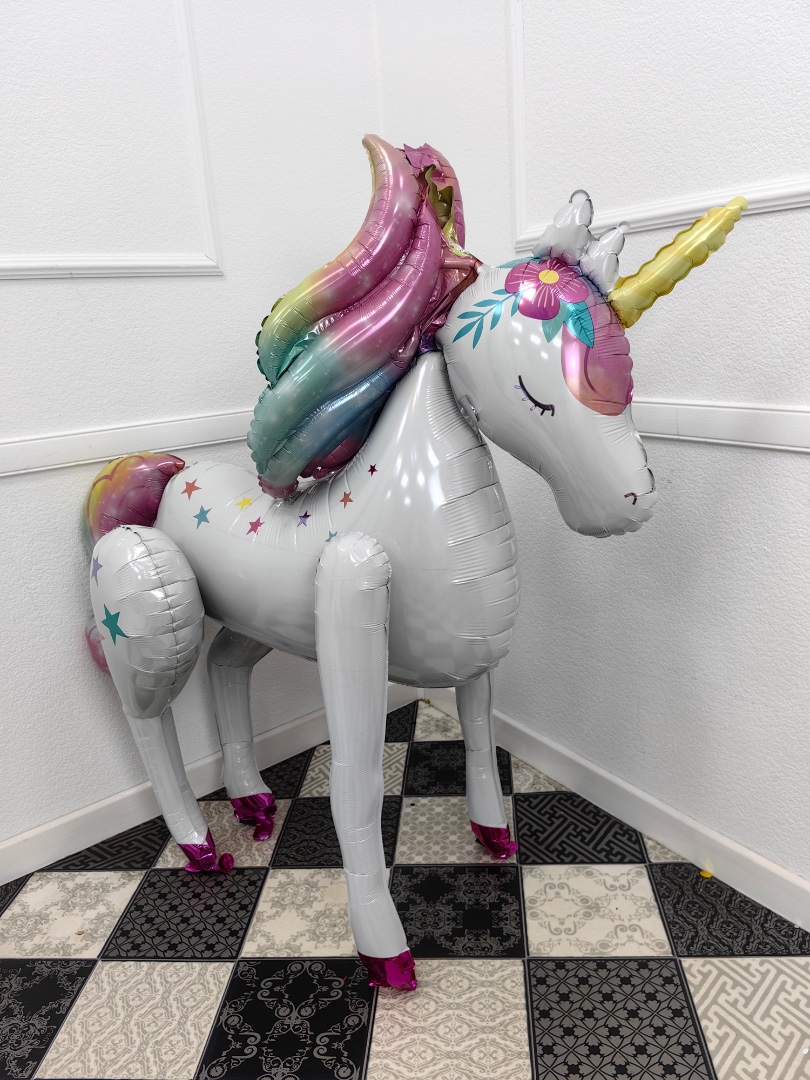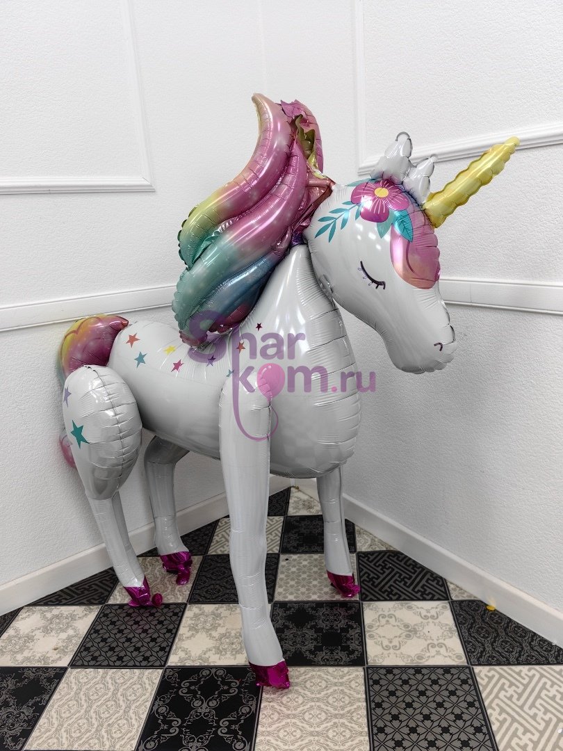 Волшебный единорог - большая ходячая фигура высотой 116 см, станет эффектным подарком или отличным фоном для фотосессии.Данный шар-ходячку можно надуть ВОЗДУХОМ. Конструкция шара и грузики, прикрепленные к нижней части фигуры, обеспечивают ей устойчивое положение. Фигура выполнена из миларовой пленки, что позволяет ей не сдуваться более недели.