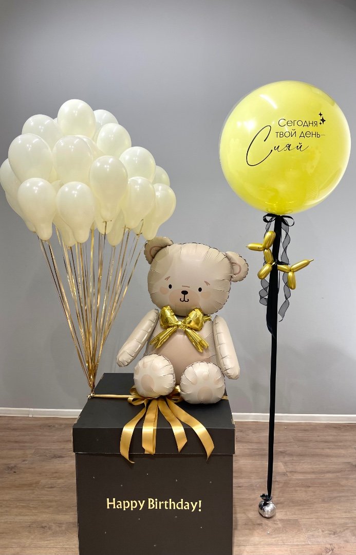 Коробка с шарами Сюрприз "Сияние" с медведем
